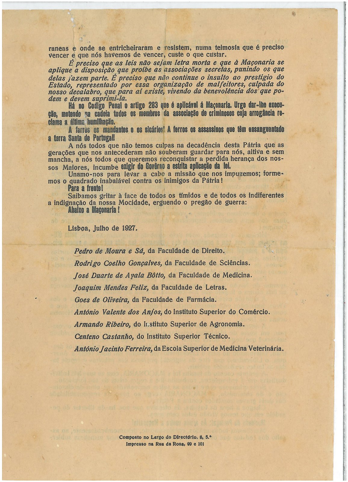 CARTA PARA A MOCIDADE PORTUGUESA CONTRA A MAÇONARIA (1927) Uma preciosidade histórica que ilustra as relações entre o regime politico Português antes do 25 de Abril e a Maçonaria. Uma proposta interessante de reflexão ![]() ![]() |